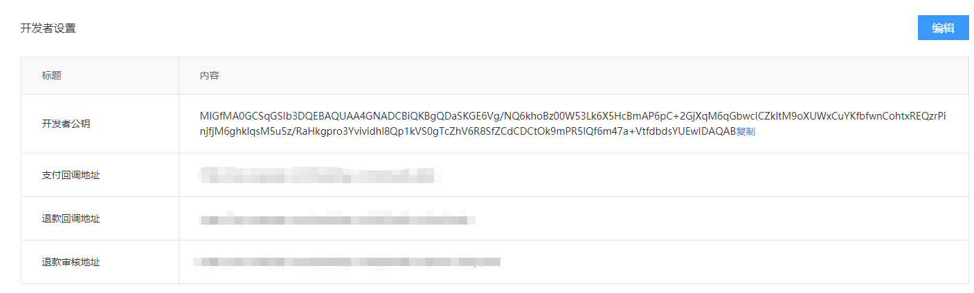 开发者公钥对应:百度小程序→运营中心→支付管理→开发者设置(开发者公钥)