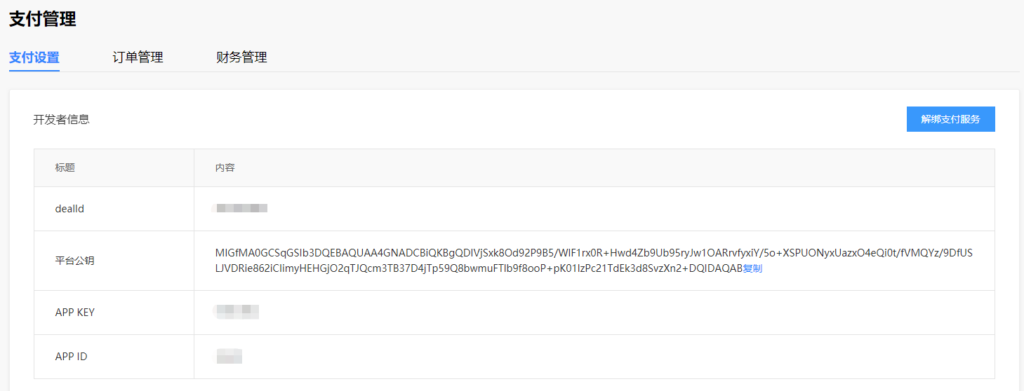 平台公钥对应:百度小程序→运营中心→支付管理→开发者信息(平台公钥)