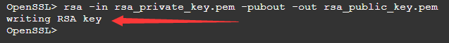 OpenSSL> rsa -in rsa_private_key.pem -pubout -out rsa_public_key.pem