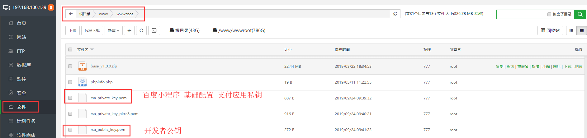 rsa_private_key.pem 为支付应用私钥(需妥善保管,防止泄露,商城后台百度小程序基础配置里面必填参数)